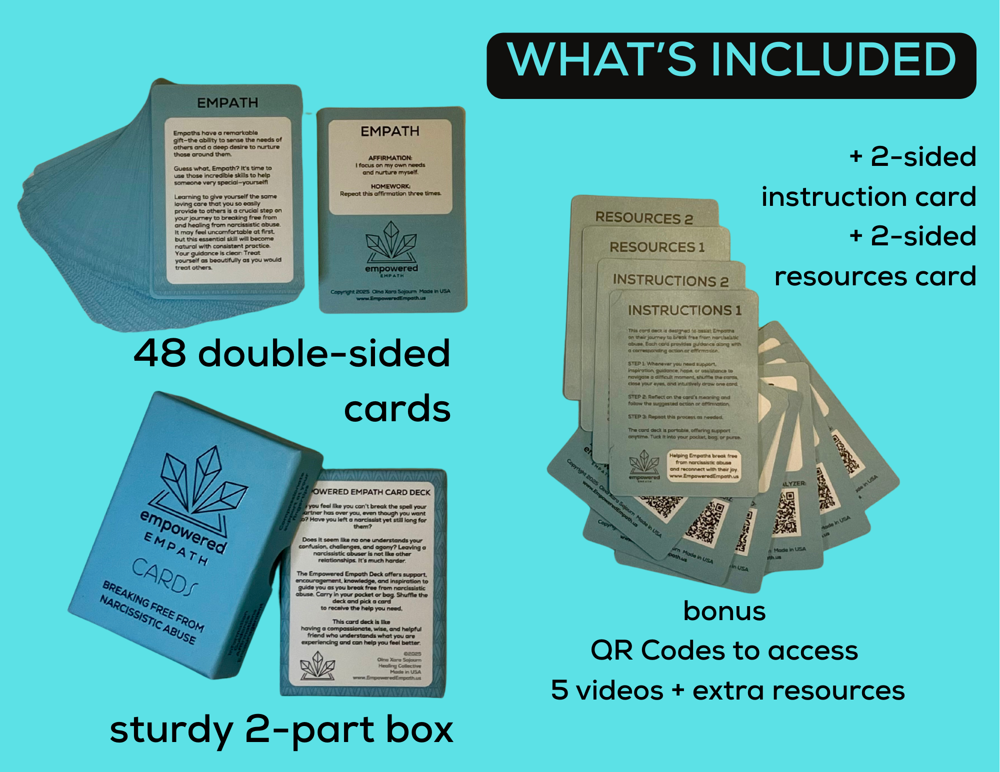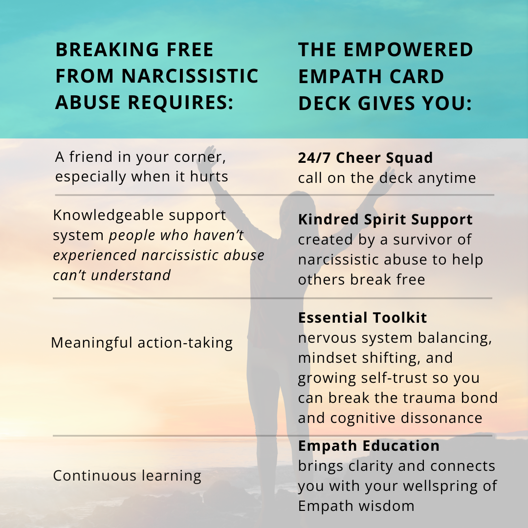 Breaking free from narcissistic abuse is hard. The Empowered Empath Card Deck makes it easier by giving you a comprehensive tool.